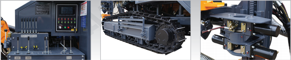 • The drill rig is equipped with the automatic rod handling system,drill pipe lubrication moudle and hydraulic dry dust collection system,etc.